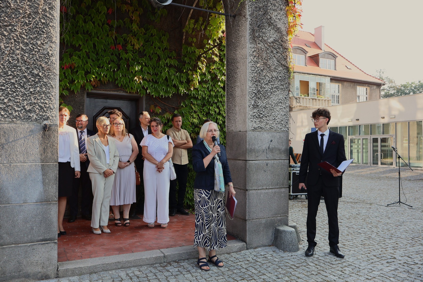 1 Września 202501.09.2025 roku w poniedziałek o godz. 8.30 na dziedzińcu szkolnym uroczyście rozpoczęliśmy rok szkolny 2025/2026. Pani dyrektor Danuta Stefańska przywitała nowych nauczycieli: p. Sandrę Sobotę (język angielski), p. Agnieszkę Trawińską (język niemiecki), p. Tomasza Grzeszkowiaka (religia, edukacja zdrowotna) oraz p. Adama Żłobińskiego (wychowanie fizyczne).