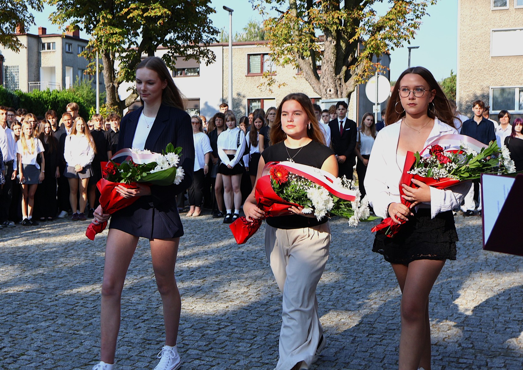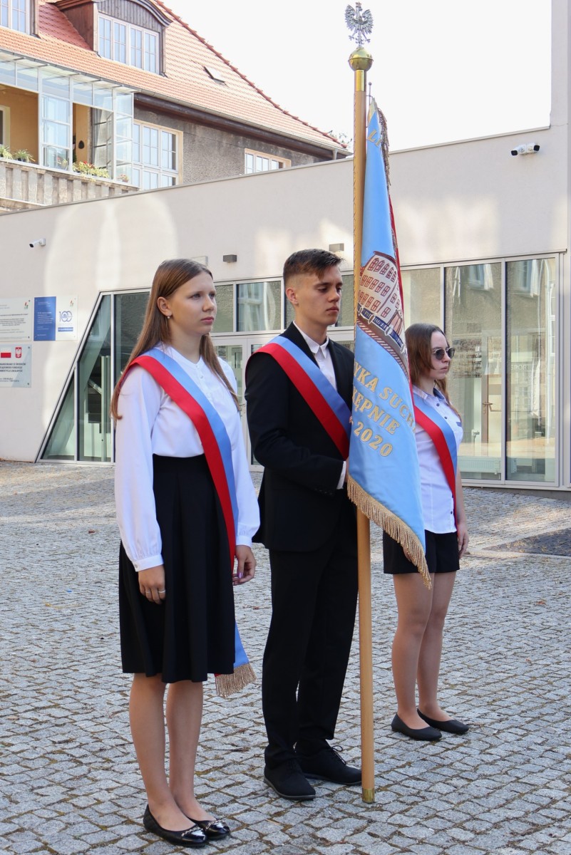 Minutą ciszy uczciliśmy kolejną rocznicę wybuchu II wojny światowej, przedstawiciele Samorządu Uczniowskiego złożyli kwiaty pod tablicą upamiętniającą poległych nauczycieli, uczniów i absolwentów oraz Patrona szkoły - majora Henryka Sucharskiego. Uroczyście zaśpiewaliśmy hymn narodowy i hymn szkoły.