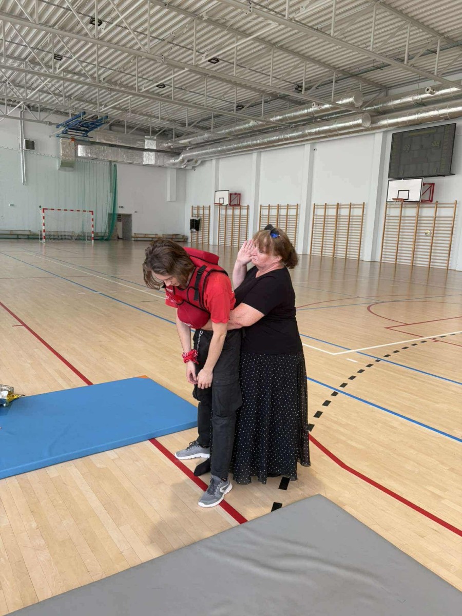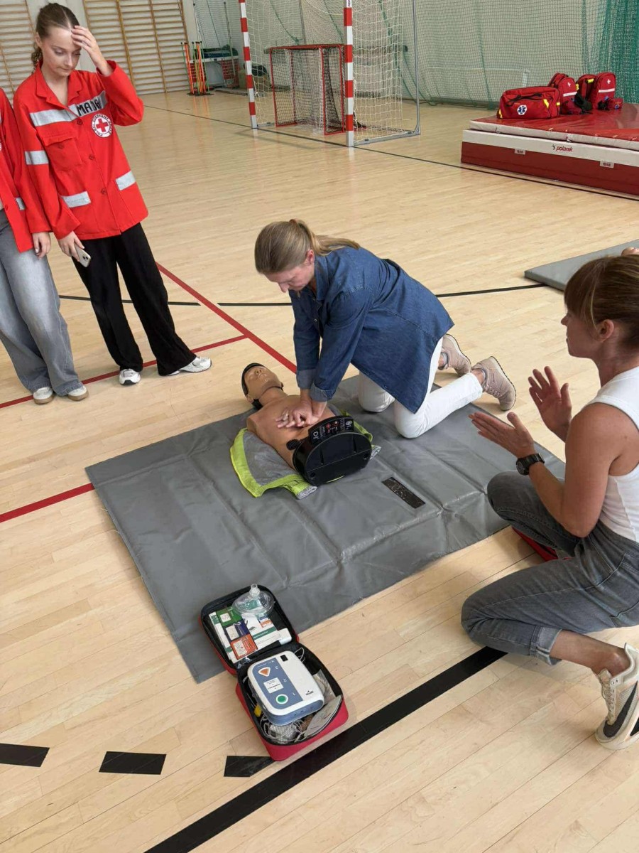 Podczas szkolenia nauczyciele mogli sami spróbować swoich sił w udzielaniu pierwszej pomocy - przećwiczyć procedury ratownicze na fantomie oraz skorzystać z nowego sprzętu - specjalistycznej kamizelki do nauki rękoczynu Heimlicha zakrztuszenie,zadławienie. Dzięki niej możliwe było bezpieczne i realistyczne przećwiczenie chwytu i uderzeń między łopatki. Mamy nadzieję, że zdobyte umiejętności dodadzą nauczycielom pewności siebie w sytuacjach kryzysowych, które - choć rzadkie - wymagają szybkiej i zdecydowanej reakcji.