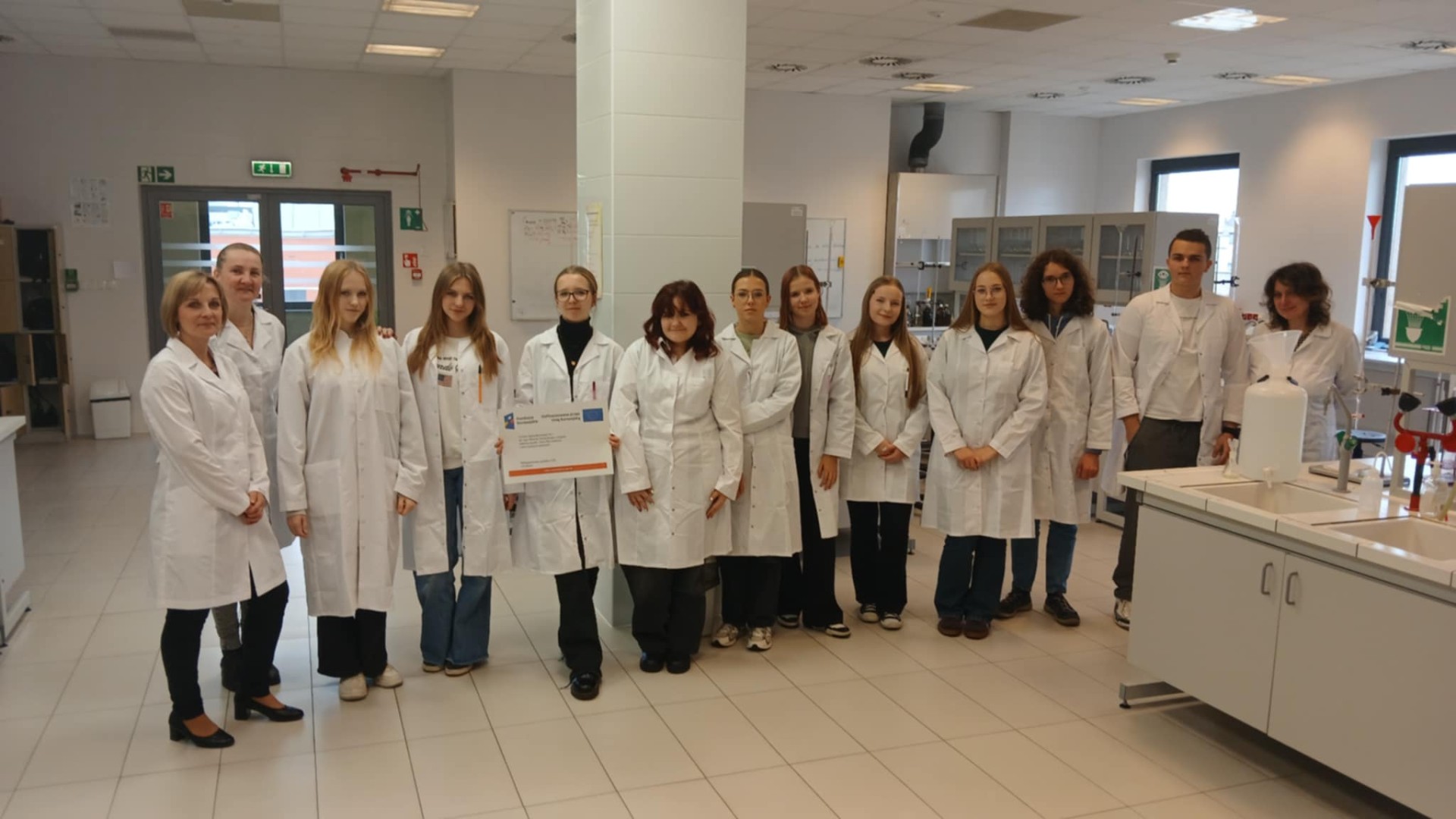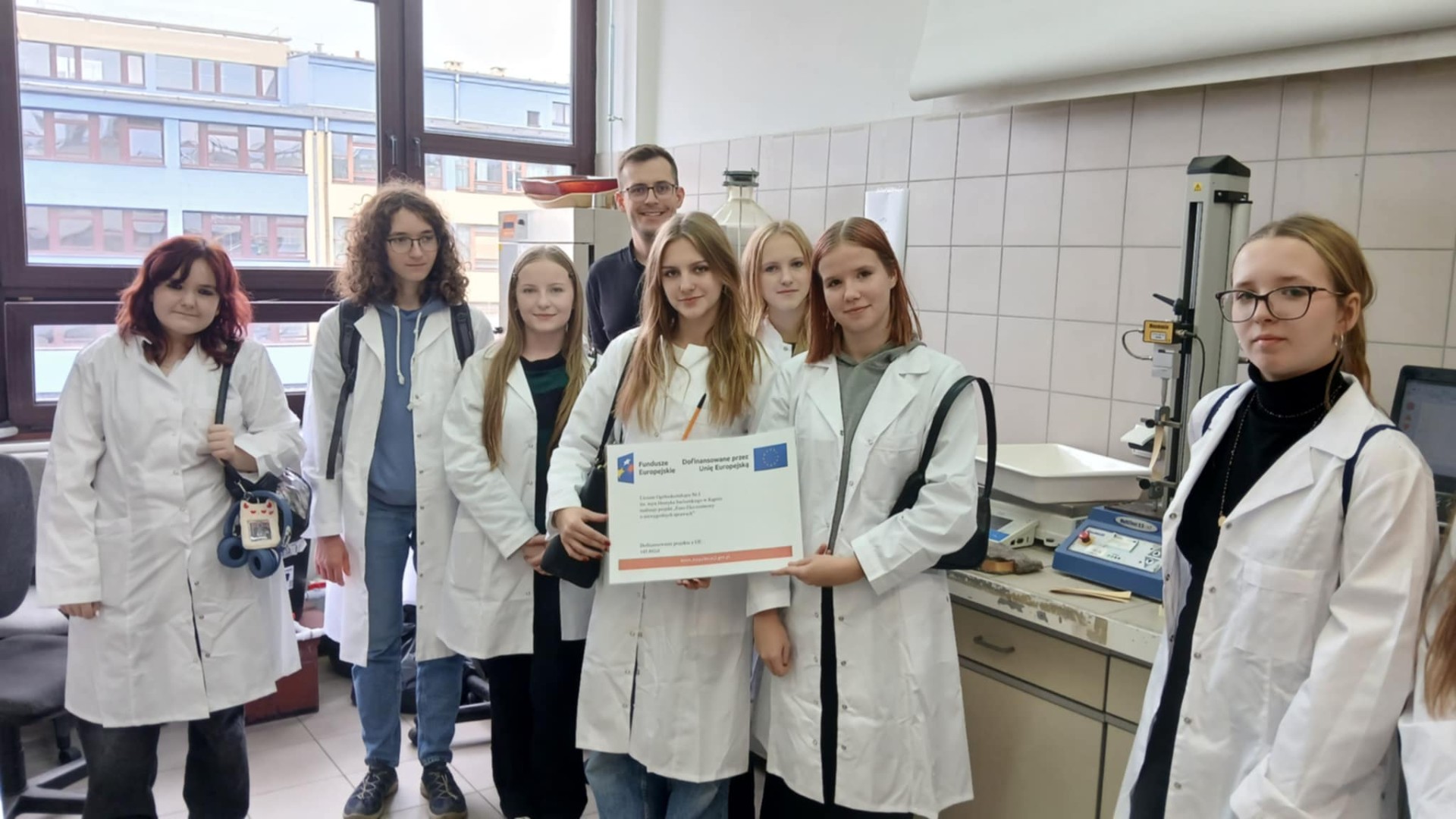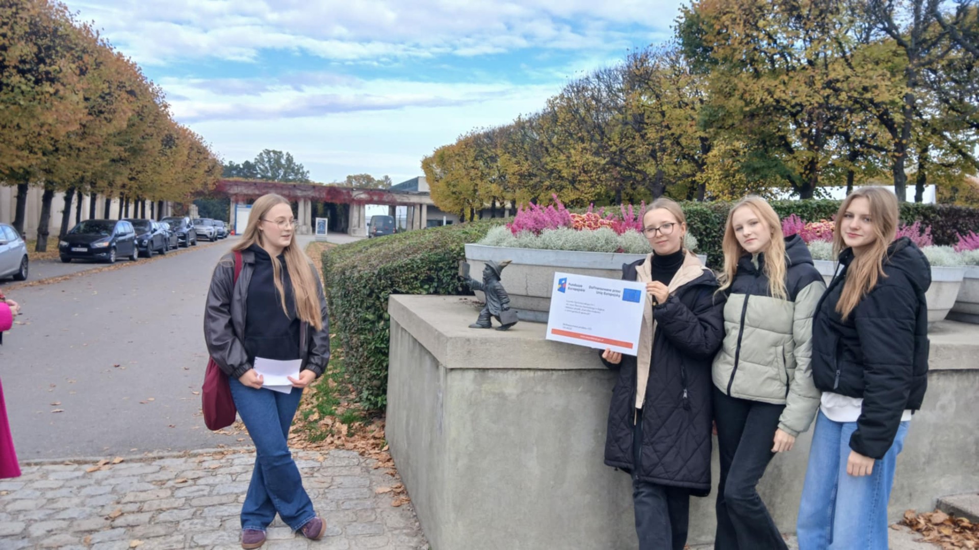 Dnia 21 października 2025 roku w ramach wsparcia psychologicznego grupa projektu FERS wzięła udział w integracyjnej wycieczce do Wrocławia. Młodzieży towarzyszyły: szkolny koordynator projektu Paulina Pacyna-Dawid i psycholog Patrycja Karwan-Makosch. Uczniowie wzięli udział w zajęciach i wykładach na Uniwersytecie Przyrodniczym. Plan spotkania opracował dr inż. Maciej Gruszczyński z Wydziału Inżynierii Kształtowania Środowiska i Geodezji. Najpierw wzięliśmy udział w ćwiczeniach laboratoryjnych, podczas których za pomocą miareczkowania określaliśmy stopień twardości wody. Następnie zapoznaliśmy się z innowacyjną technologią wspomagającą oszczędzanie wody i wegetację roślin. Finalnie obejrzeliśmy hydrologiczną makietę Wrocławia, dzięki której dowiedzieliśmy się, jakie czynniki sprzyjają powstawaniu powodzi i jak człowiek może im zapobiec, a także obserwowaliśmy doświadczenie Reynoldsa. Po wizycie na UP udaliśmysię na spacer po wrocawskiej pergoli, gdzie w języku angielskim opowiadaliśmy sobie o zabytkach i atrakcjach tego miasta oraz uczestniczyliśmy w pokazie dziennym Fontanny Multimedialnej. Pani psycholog mogła zaobserwować, w jaki sposób ze sobą współpracujemy i jak reagujemy na nowe zadania. Uwagi zostaną nam przedstawione już wkrótce!
